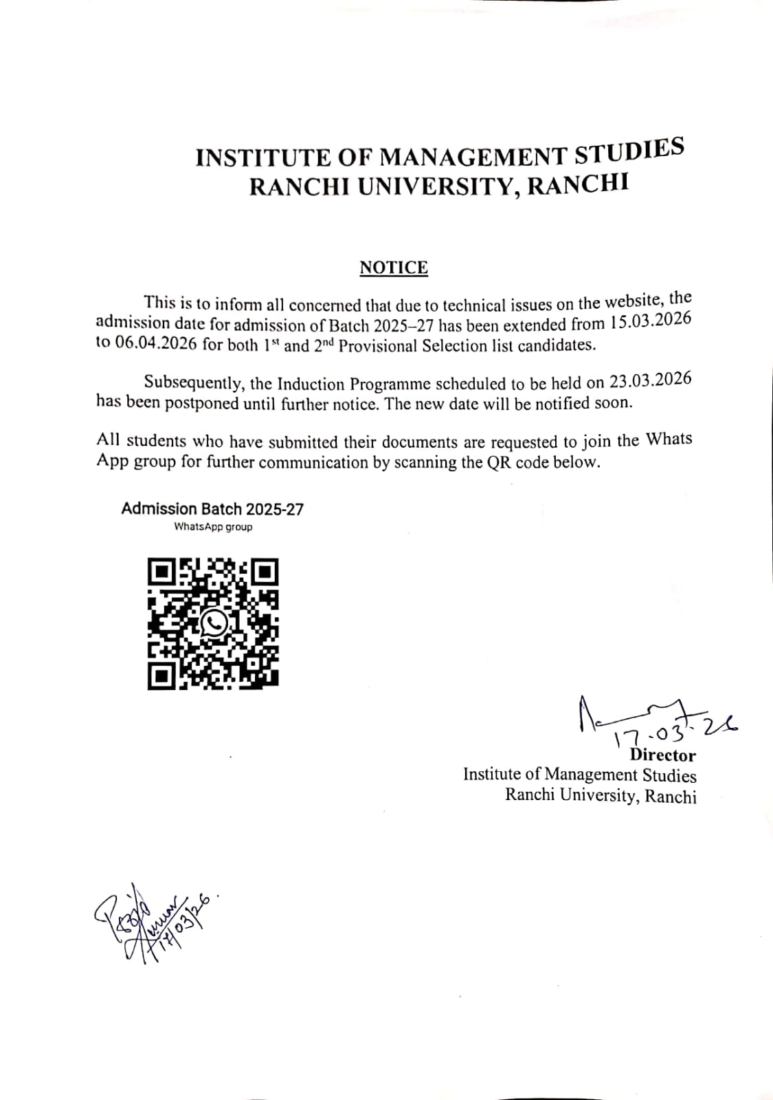 Admission Notice MBA full-time students of Semester-II (Session 2024-2026)